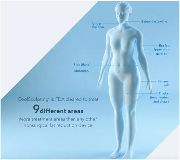 As with CoolSculpting Legacy, CoolSculpting Elite is cleared by the FDA to remove unwanted body fat in the following nine body areas: